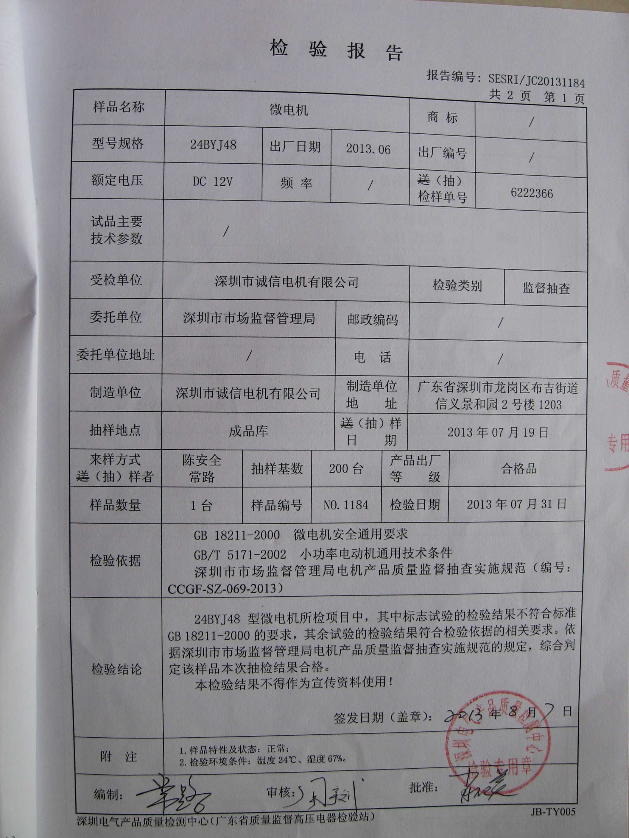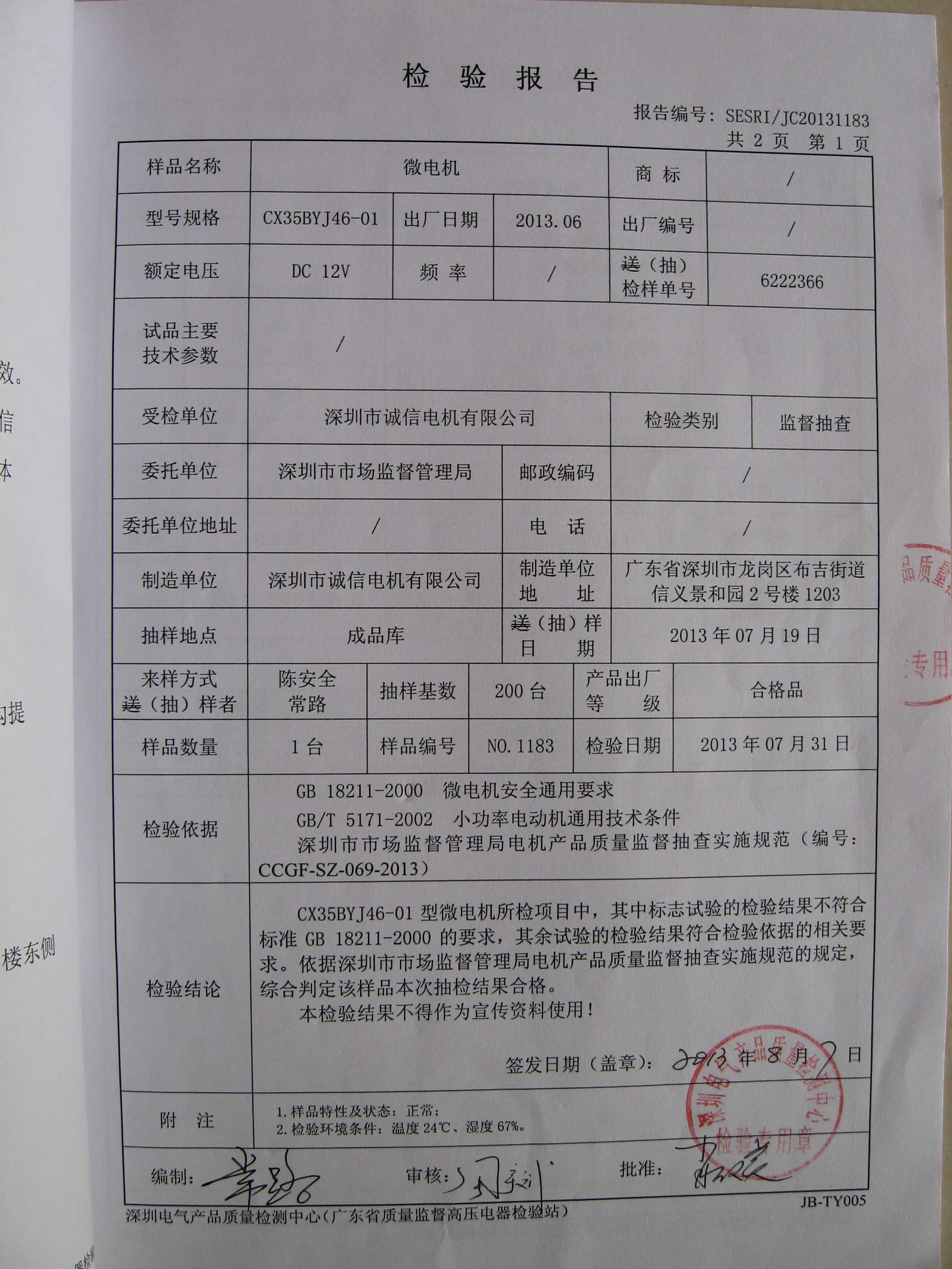 我司產(chǎn)品連續(xù)2年被深圳市質(zhì)量技術(shù)監(jiān)督局抽檢合格